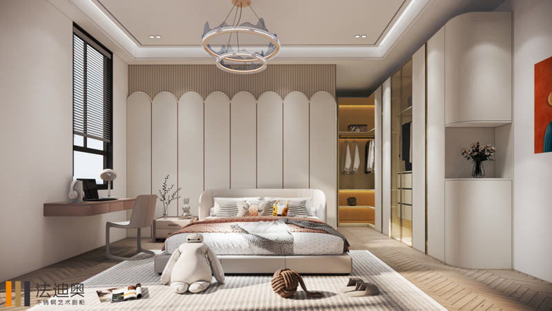 Transformez votre espace avec la garde-robe féminine moderne de Fadior, où le chic rencontre la sophistication.offrir un look élégant et élégantLe corps de la garde-robe est d'un blanc crème doux, harmonisant magnifiquement avec le plancher en grains de bois clair et le plafond blanc avec de subtils reflets jaunes.Cette garde-robe combine une élégance intemporelle avec une durabilité exceptionnelle., ce qui en fait un choix parfait pour les intérieurs contemporains.