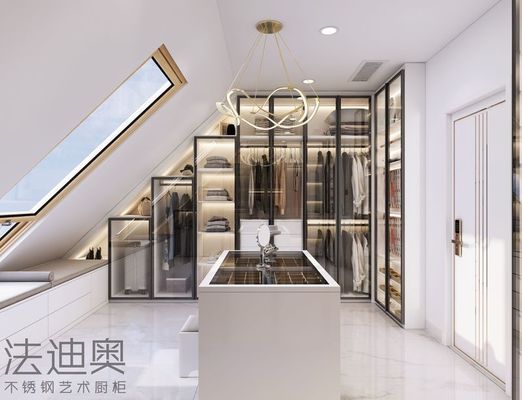 Présentation de la dernière création de Fadior dans le luxe moderne: un superbe placard ouvert en acier inoxydable qui incarne l'élégance raffinée et la praticité.Cette garde-robe est dotée d'un cadre en acier inoxydable élégant complété par des portes en verre transparentLes étagères et le corps de l'armoire sont finis en blanc vierge, tandis que le sol en marbre ajoute une touche d'élégance classique.L' armoire de l' île correspond aux étagères blanchesLes lumières jaunes chaudes offrent une lueur accueillante, soulignant le design élégant de la garde-robe.Le placard ouvert et l'armoire insulaire sont équipés de tiroirs pour un rangement pratique et disposent d'une boîte à bijoux pour une fonctionnalité supplémentaireL'utilisation experte de l'acier inoxydable par Fadior garantit une durabilité et un attrait intemporel, faisant de ce placard un choix exceptionnel pour les maisons contemporaines.