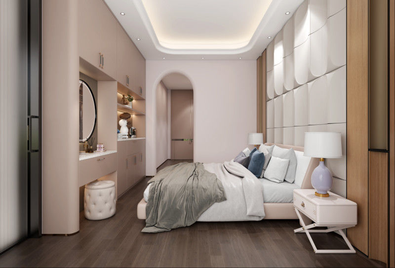 | Caractéristiques du design | Le placard au pied du lit est équipé d'une vanité, avec un design d'étagère ouverte pour placer |