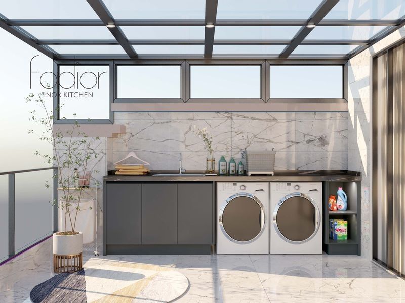 | Caractéristiques de stockage | Comprend un armoire indépendante, un espace pour les machines à laver et à sécher, et une étagère ouverte avec un |