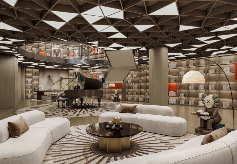 | Fonctionnalité | Les étagères ouvertes offrent un grand espace pour le stockage et l'affichage des livres, avec des accents vifs pour diviser l'espace et |