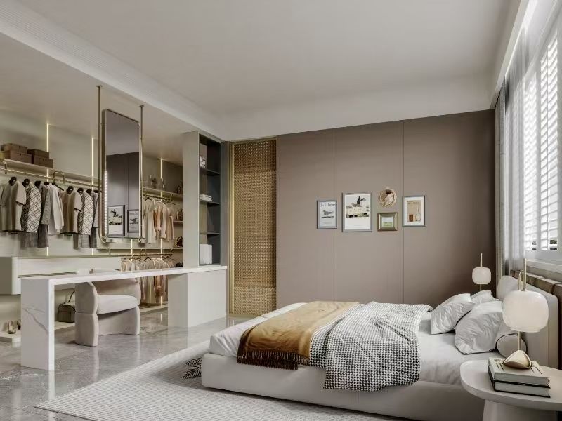 | Q : Pourquoi ce dressing combine-t-il le blanc / champagne avec une structure en acier inoxydable ? La valeur réside dans le fait que le blanc / champagne confère au projet une identité visuelle plus chaleureuse et plus résidentielle, tandis que la structure d'armoire en acier inoxydable rend le système d'armoires facile à entretenir et plus crédible pour une utilisation à long terme. |