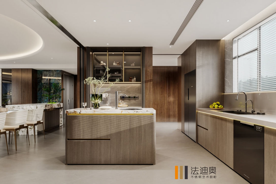 | Q: Quels signaux de personnalisation sont déjà visibles sur cette page de fusion de cuisine en acier inoxydable et bois? Les signaux les plus clairs sont la coordination de la taille, le contrôle de la finition et la planification du stockage.Ces indices aident l'acheteur à déterminer si le fournisseur peut adapter le produit à un projet au lieu de livrer un module de détail fixe. |
