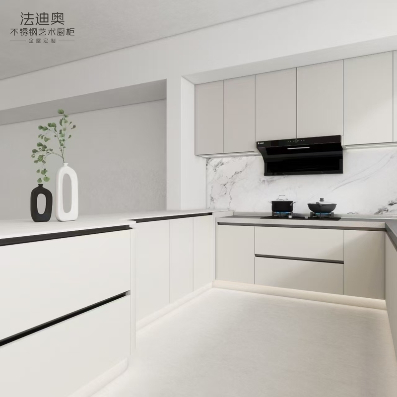 Fadior White Stainless Steel Kitchen Cabinets – Modern Custom Design with Integrated Appliances