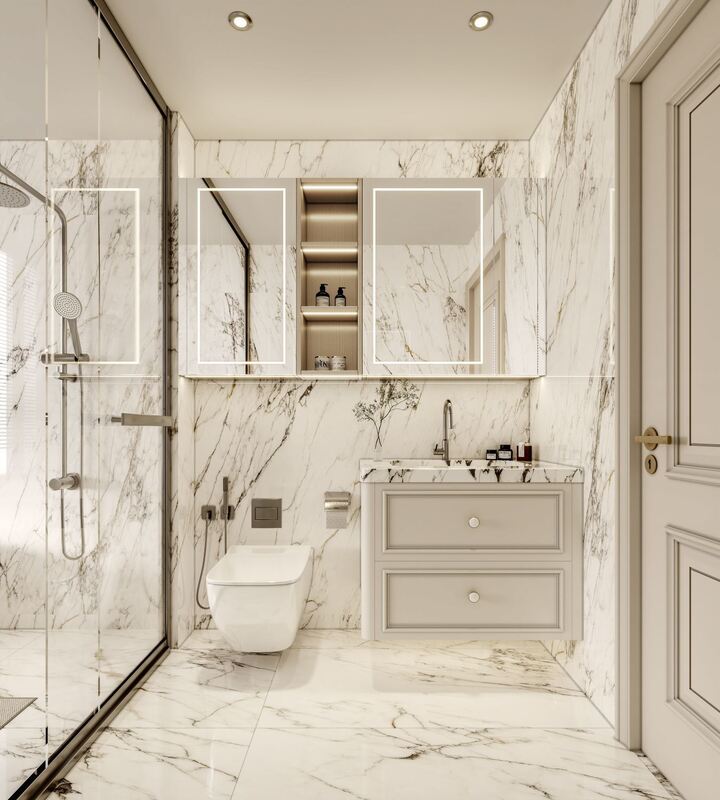 | Schéma de couleurs | Portes d'armoire entièrement blanches, créant un look lumineux et propre, adapté aux intérieurs de salle de bain raffinés. |