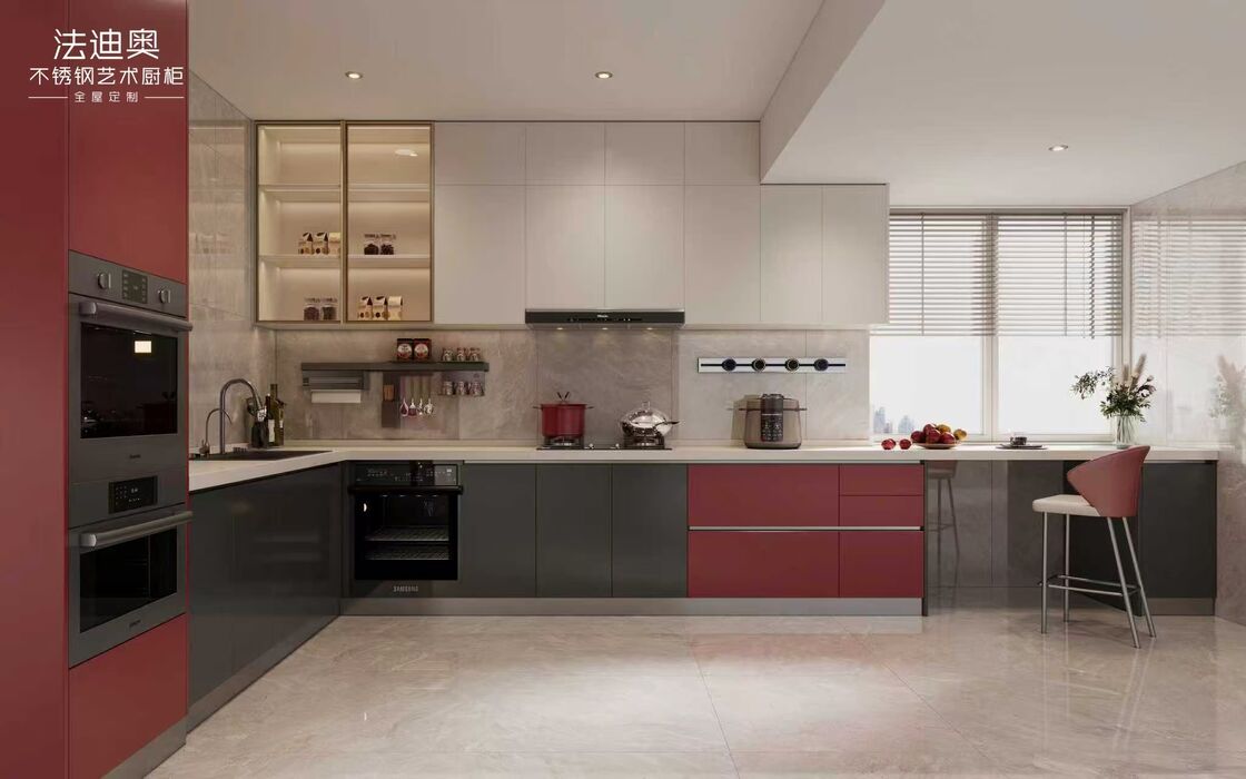 | Q: Quels signaux de personnalisation sont déjà visibles sur cette page d'armoire de cuisine en acier inoxydable de style urbain ouvert, couleur vin rouge ? Les signaux les plus clairs sont la coordination des tailles, la couleur grise et la planification du rangement. Ces indices aident un acheteur à juger si le fournisseur peut adapter le produit à un projet au lieu d'expédier un module de vente au détail fixe. |