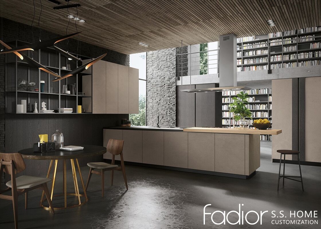 Bold architectural lines, textured stone-tone cabinetry, and a floating island define this modern loft kitchen by Fadior. Designed for open-plan living, the layout blends cooking, dining, and social interaction into one continuous space. Behind the refined surfaces lies Fadior’s precision stainless steel cabinet framework, engineered for superior strength, moisture resistance, and long-term stability. The extended island creates a natural gathering point while maximizing preparation space, and the seamless cabinet arrangement keeps the visual flow clean and organized. This kitchen combines contemporary industrial aesthetics with the lasting durability of stainless steel craftsmanship.