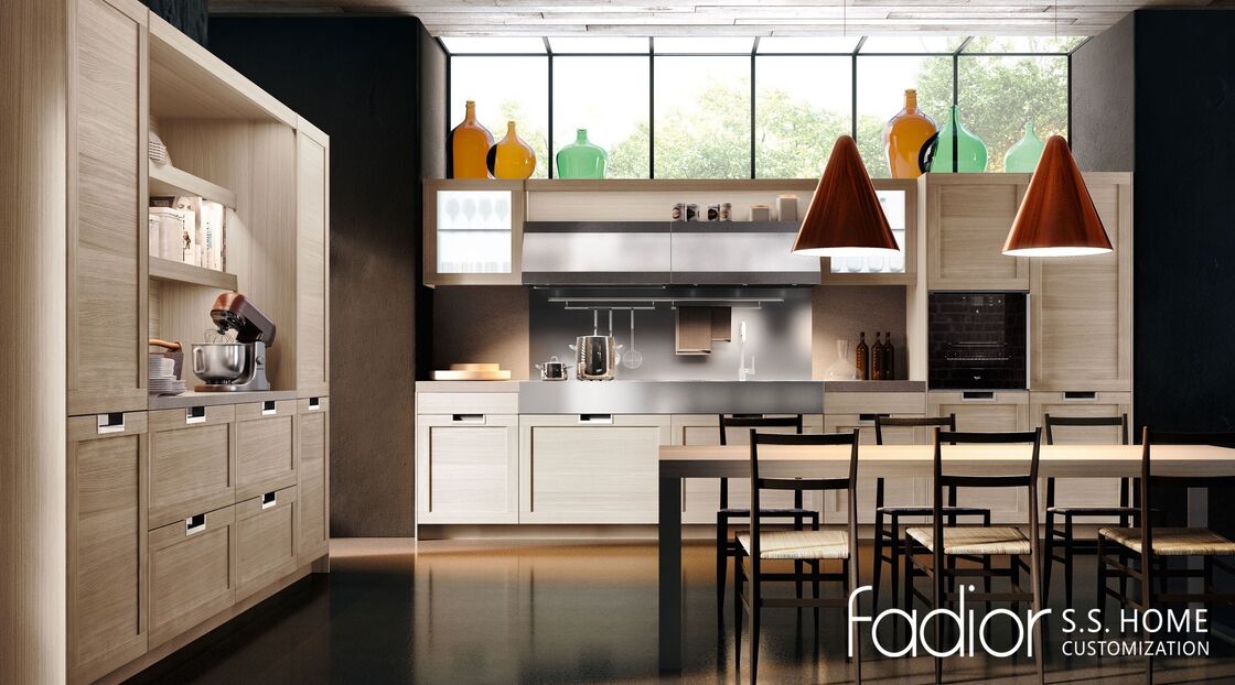 | Combinaison de Couleurs | Armoires en bois naturel clair associées à des surfaces en acier inoxydable |