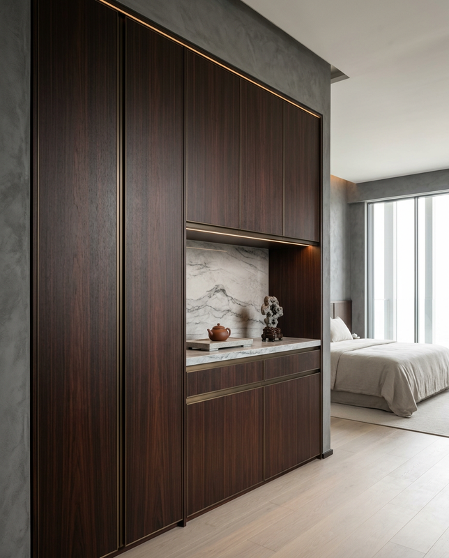 | Usage | Primary bedroom walk-in wardrobe or dedicated dressing room; suitable for residential luxury projects and designer hospitality suites requiring refined material expression |