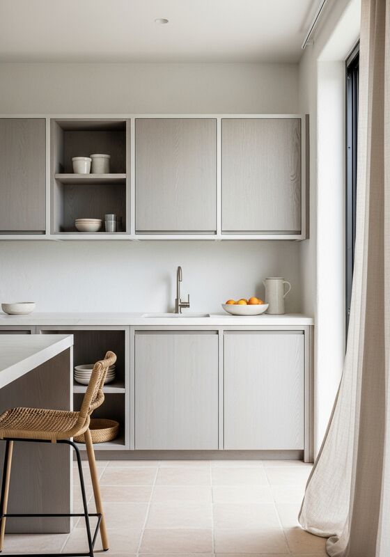 | Style de conception | Minimalisme côtier blanchi au soleil avec une texture visible et des surfaces sèches mates |
